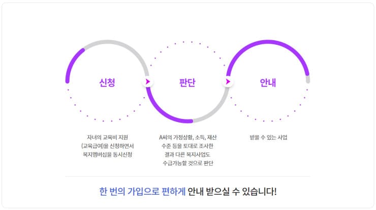 - 자녀의 교육비(교육급여)를 지원 신청하면서 복지멤버십을 동시에 신청합니다.